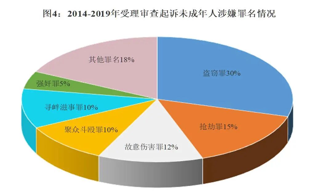 2019年,前6位犯罪人数分别是盗窃、抢劫、故意伤害、聚众斗殴、寻衅滋事、强奸,6类犯罪占提起公诉总人数的82%,全部为暴力性质犯罪。