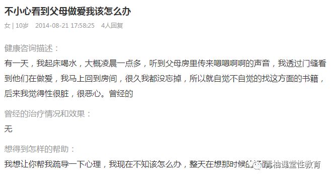 比如这个13岁的孩子在看到自己的父母做爱之后在网络上求助:
