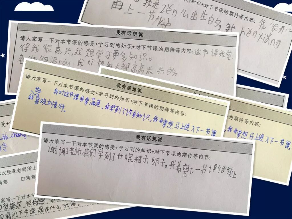 孩子3:这节课我觉得我很高兴,我想学习更多知识,老师很温柔,我希望每天都高高兴兴的。