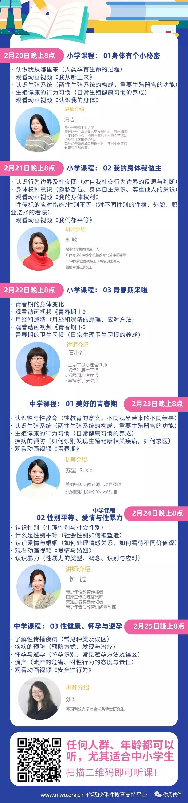 你我伙伴性教育支持平台通过免费课程包及专业支持,倡导人人都能参与性教育—特别是学校和社会公益组织常规、系统的开展性教育工作,让每一个儿童和青少年都能享有全面性教育的机会。
