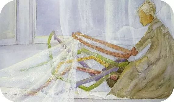 苏菲是个艺术家,在她小时候,大家都说:“总有一天,她会织出了不起的杰作。”她很勤奋,每天不停地编织着。