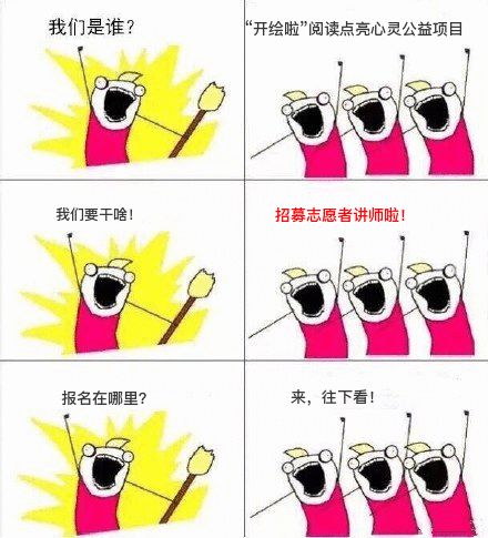 2019年下半年度“开绘啦”项目计划招募志愿者讲师500名,其中新闻小分队志愿者15-20名。主讲和助教根据培训及考核结果,结合个人意愿来决定。