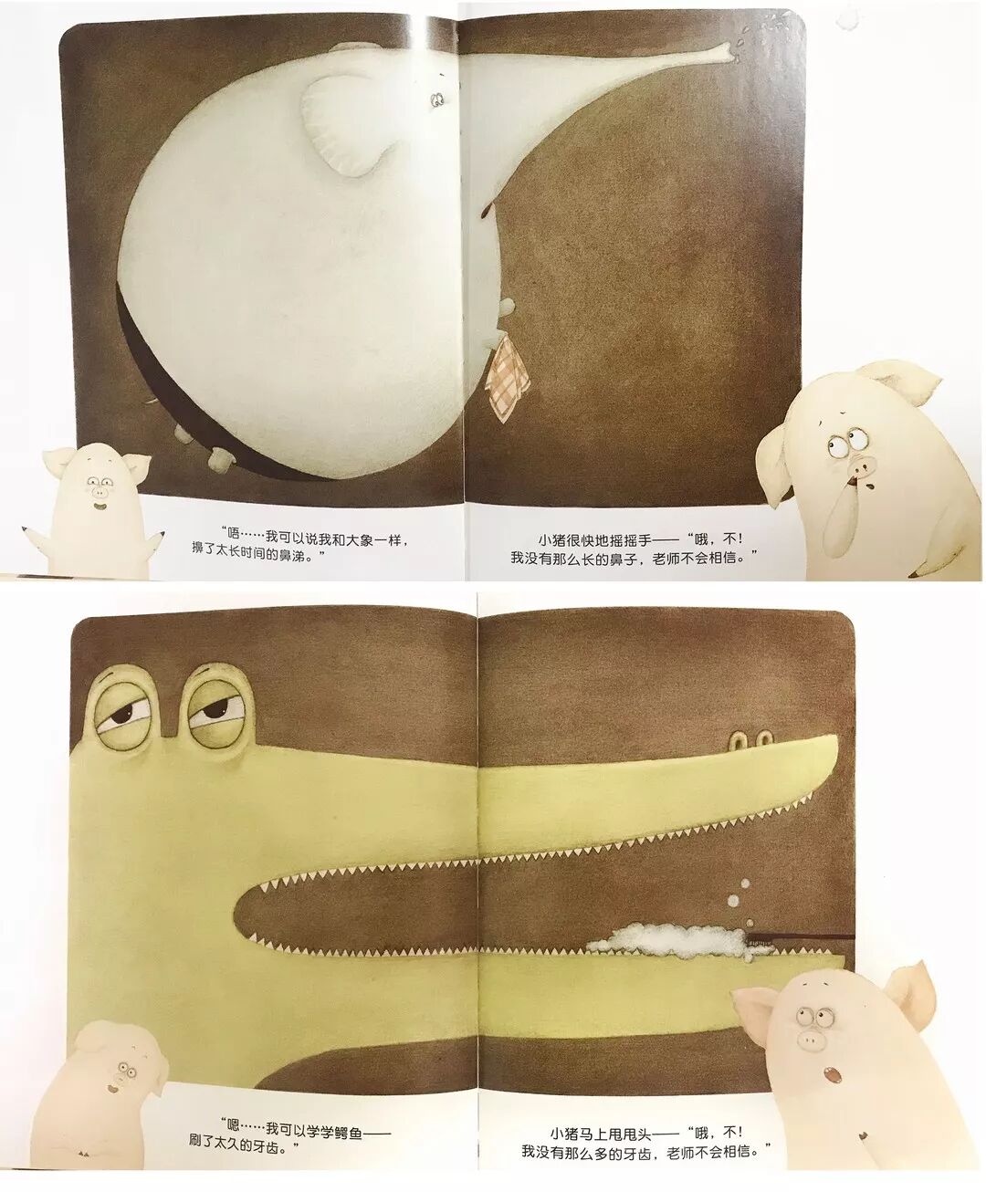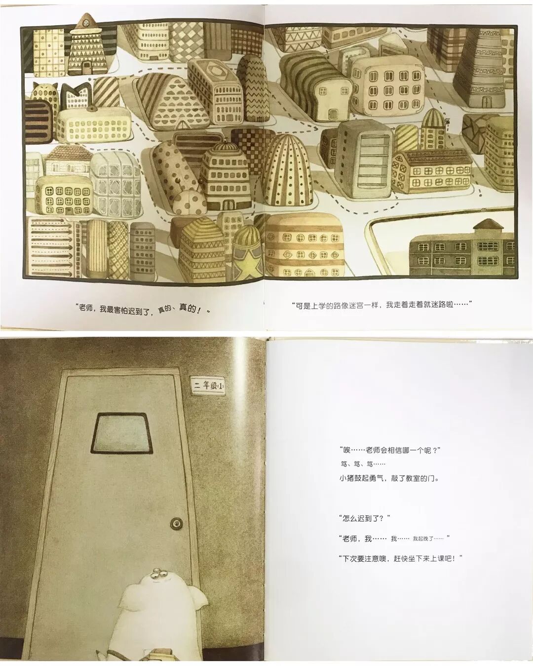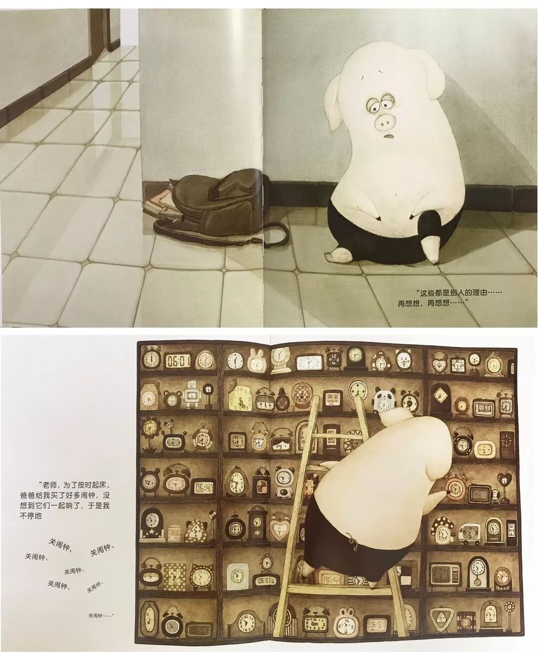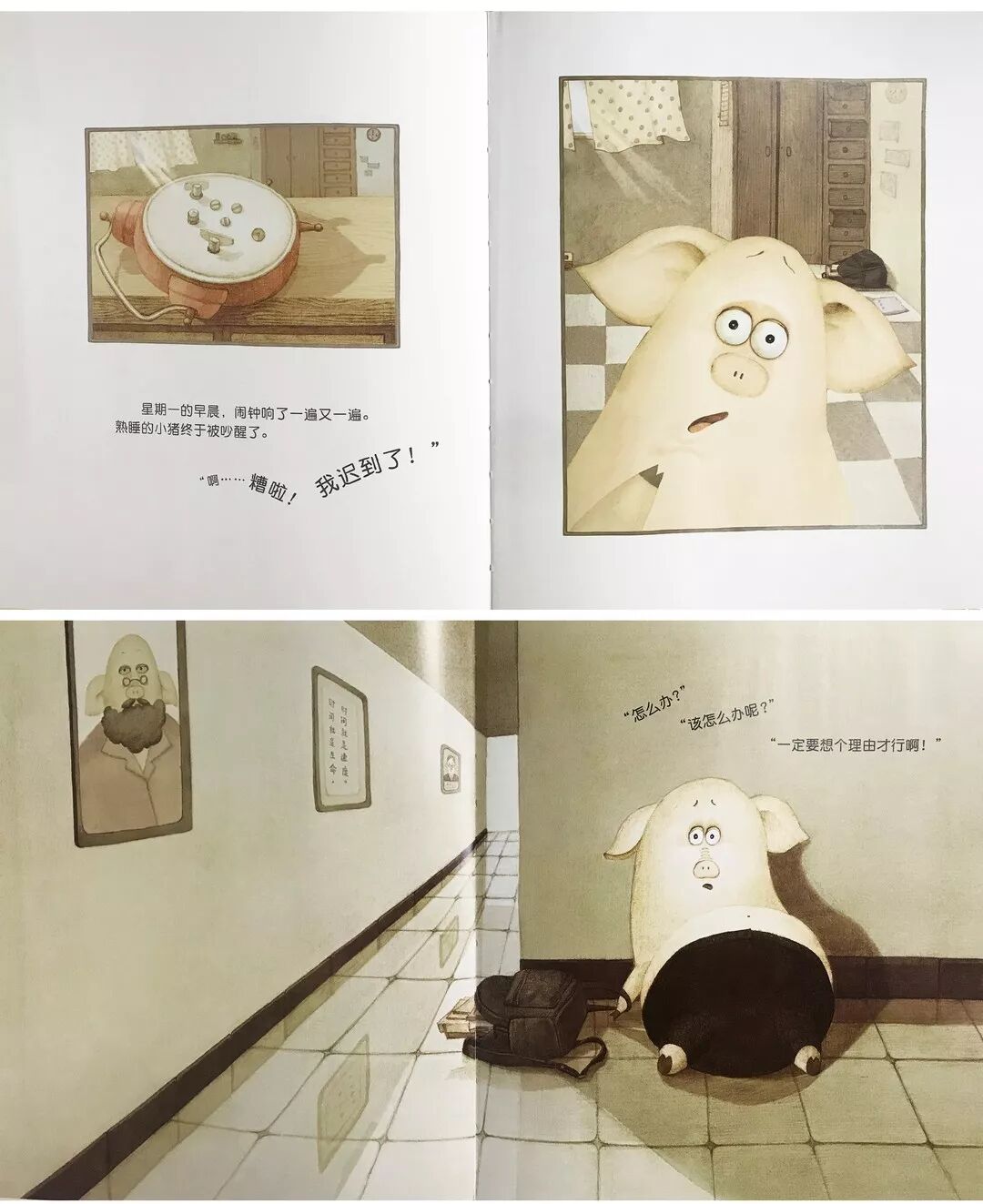作者|唐棠 来源|开绘啦(ID:kaihuila2018) 转载请联系授权(微信ID:huibenyueduwangxu) 没有哪一个父母不希望自己的孩子在读、写、说等方面表现出色,但是这样的能力可不是一夜之间成就的,3-8岁是儿童学习早期阅读和读写的关键期,孩子越早进入读写状态,不管是语言组织能力还是书写能力,甚至是孩子的自信心都会大有益处,为孩子今后的学习起到基础性作用,也为发展其他技能创造了条件。 以《迟到的理由》这本绘本为例,在阅读绘本的时候,可以借此契机培养和发展孩子的早期读写能力。 01 重视对文字的阅读,发展孩子文字功能和文字规则意识 在和孩子共读这本书的时候,可以先让孩子观察封面上的文字信息,书名、作者、出版社等,建立孩子的文字功能意识。许多绘本的封面都是截取了正文中的图画,选的通常是故事中最关键的要素,哪怕是一个孩子,也可以从绘本的封面上猜出这本书讲了一个什么故事。因此阅读时,先仔细观察绘本的封面:一只表情怪异的小猪和一个不停响的闹钟,就大概猜得到是一个什么样的故事了,孩子自然就将文字和图片意思联系在一起了。 02 尽可能的按照原文讲故事,且跟孩子一起探讨图画书中的意义 星期一的早晨,闹钟响了好久好久。睡沉的小猪终于被吵醒了。“啊…….天哪!我迟到了!”匆匆忙忙地赶到学校。“安静的学校,一点声音也没有”,这种安静的压力,让小猪觉得必须要找个迟到的理由,而想象力丰富的小猪想了各种异想天开的理由; 像大象一样擤了很久的鼻子 像鳄鱼一样刷了很久的牙齿 像长颈鹿一样系了很久的围巾 爸爸买了太多闹钟来不及关 妈妈做了太多早饭吃了很久 跑的太快东西丢了去捡 走着走着迷路了 经过这些跌宕的幻想情节,到了最令人担心的时候,却只说了“我…我….我起晚了”。老师只是说了句“下次注意,快坐下上课”,而小猪欣喜的发现,“这才是最好的理由”。作者一句实话将故事迅速收场,使得“诚实”和“谎言”的困惑被不着痕迹地巧妙解决了。 家长在大声给孩子读故事的时,孩子开始发展故事理解能力,开始理解小猪迟到事件是以一定的顺序发生的,然后开始理解书中事件的发展。一段时间之后,孩子就能够理解故事的情节或者观点(诚实的力量),能够对故事中的事件给出恰当的反应(比如,为故事中小猪没有挨批评而感到高兴)。 03 讨论图画书中的功能性文字和符号 家长可以适时的点读,让孩子知道成人读的是字,是书面的文字,而不是图画,是从左往右呈现的,文字是由字组成的。让孩子知道原来这个符号,这个文字是有意义的,是与说明不一样的,这些技能都在教孩子学习如何使用书本,识别书本封面,指着词并开始用笔涂画时开始发展早期的读写能力。 “啊……糟啦!我迟到了!”在家长给孩子读这句的时候,可以用手随着文字设计的幅度划过,声音也随着幅度加大,当孩子开始对听到的内容进行反应的时候,你就知道孩子开始理解词汇了。 04 鼓励孩子书写自己的故事 孩子的认知水平决定了他对一个角色理解和感受,并将自己听到的或者看到的内容与实际生活联系在一起做结合(比如,指着书中的闹钟,找房间的闹钟),显示出初始阶段的理解力萌芽。在此阶段,家长们可以鼓励孩子借助图画,符号,文字等多种形式,创意地表达比较复杂的内容。 例如让孩子给小猪写一封信,他可能会画一只小猪和一个人,但是不会表达喜欢,他会画一个图形代表,在中间画一个“♡”,不会写“猪”,可是知道写拼音,就鼓励他写上去。所以他最后的作品呈现的是画了一只可爱的小猪和一个小人,自己写上去“我♡小zhu”。孩子进行创写的时候,让他用能表达的一切方式表达出来,画画、拼贴、拼音等等,只要能表达出自己想表达的意思,让他知道用文字和符号替代都可以,目的是引发孩子对书写的认识,通过这些方式培养孩子早期书写能力。 具备读写能力的孩子懂得用声音、字符、图像联系起来表达自己的思想。事实上,读写潜能在孩子出生时就已经有了,但是要将这种潜能发挥出来,并真正成为孩子自身的能力,就要家长们有互动的、有目的性的培养并坚持下去。 早期读写能力的培养: 1.重视对封面的阅读,发展孩子文字功能和文字规则意识 2.尽可能的按照原文讲故事,且跟孩子一起探讨图画书中的意义 3.讨论图画书中的功能性文字和符号 4.鼓励孩子书写自己的故事 长按可分享至朋友圈 本文作者 -END- 扫描二维码让阅读点亮心灵 编辑|孙豆豆 推荐阅读