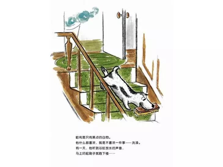 这只顽皮的小狗总会给自己找些小“麻烦”,不过,主意多多的它每次都能找到“化险为夷”的好办法!这个故事中,哈利为了逃避洗澡,把刷子藏在后院,溜出家门出去玩,结果从一只有黑点的白狗变成了一只有白点的黑狗!这下糟糕了,连主人也认不出它了……