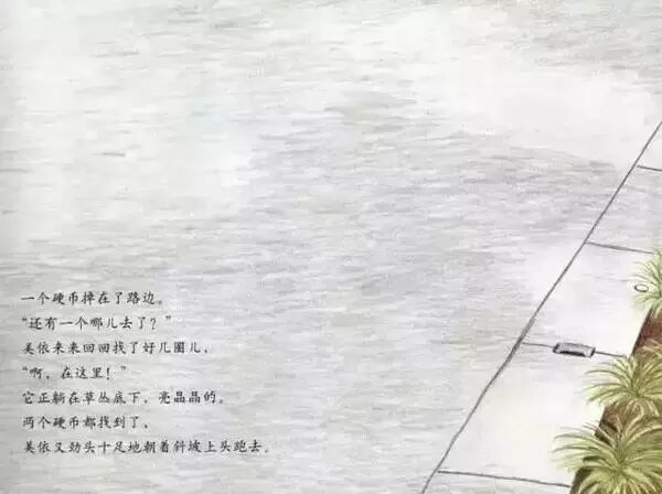接下来的情节是,美伊因为急于赶到商店,跑了起来,结果摔倒在地,她爬起来后,不顾自己膝盖的伤痛,首先做的是找回掉落的两枚硬币。这一笔写出了美伊内心的责任感。