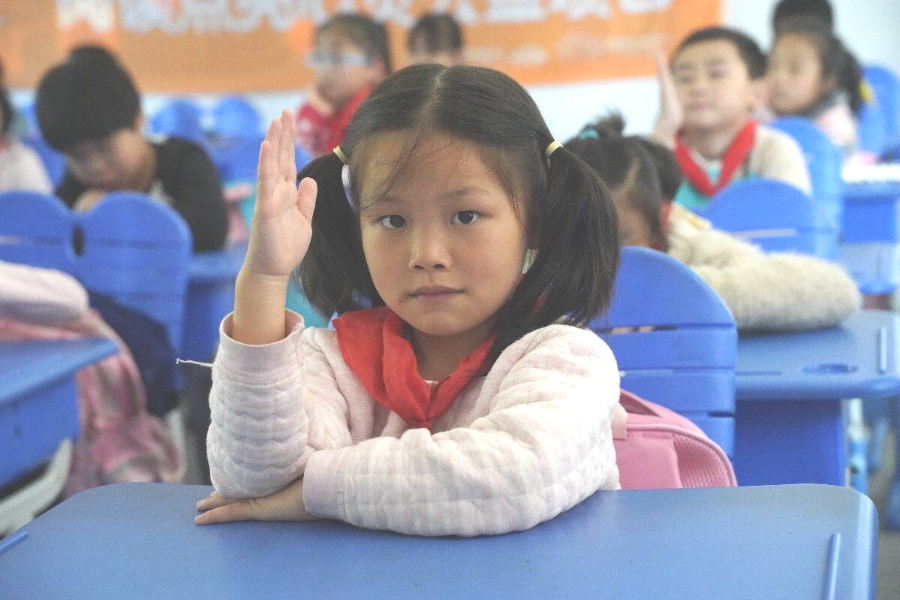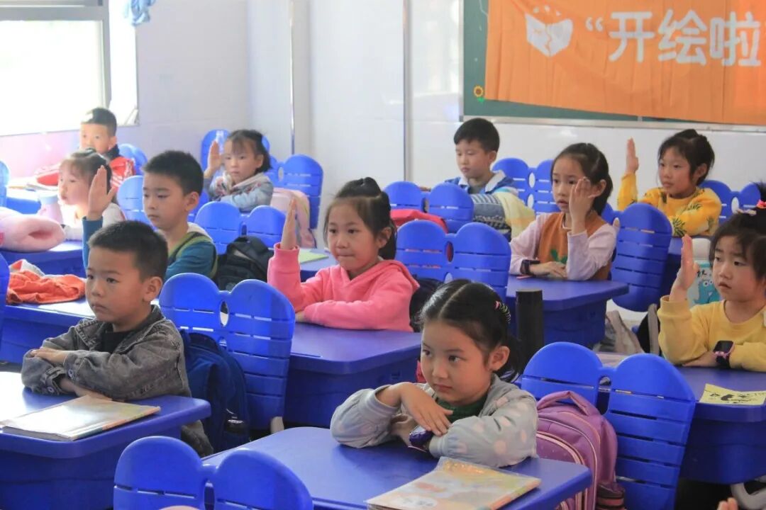 孩子们认真听课回答问题