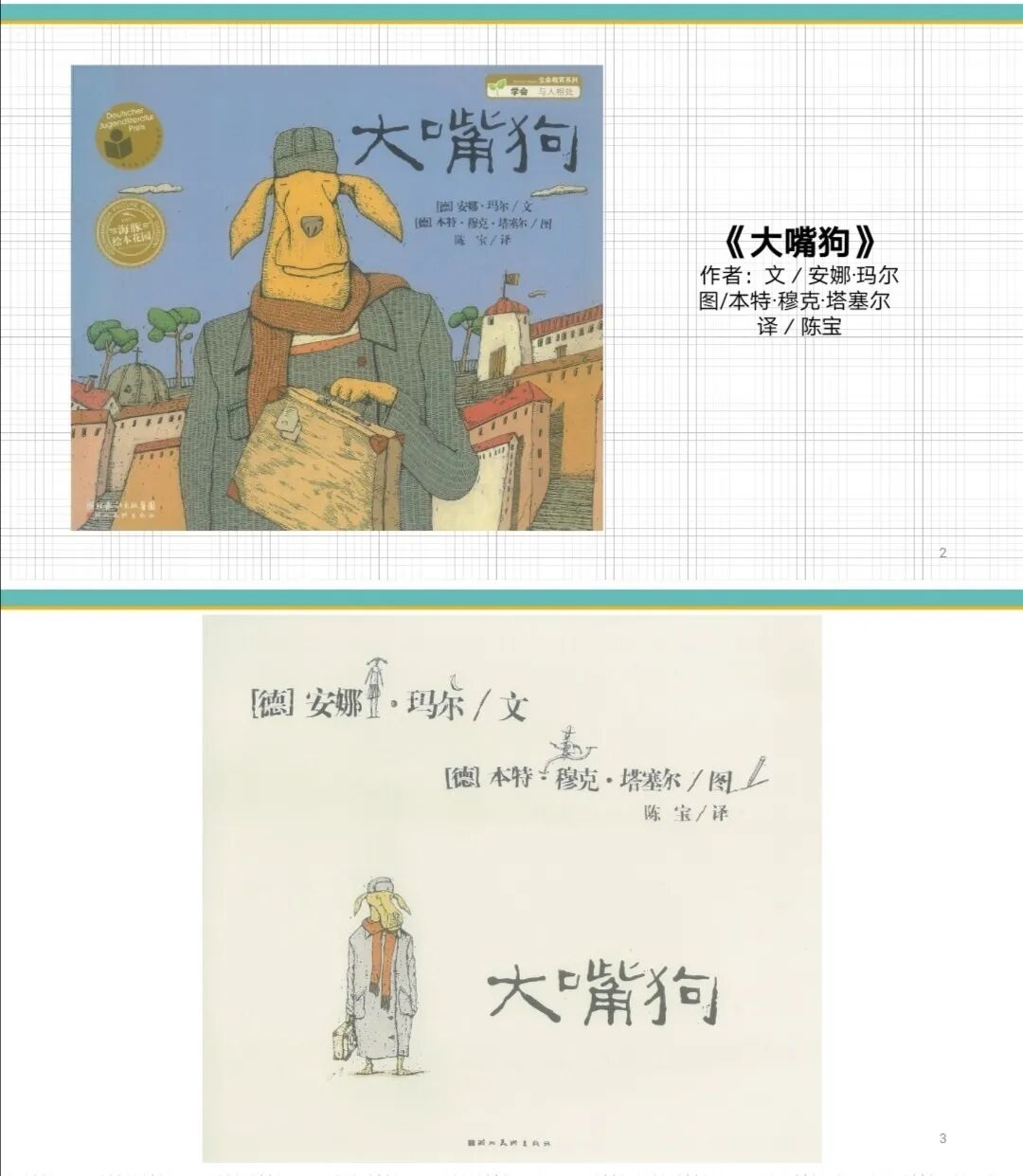 在《大嘴狗》里提出用大嘴接送孩子,装彩笔