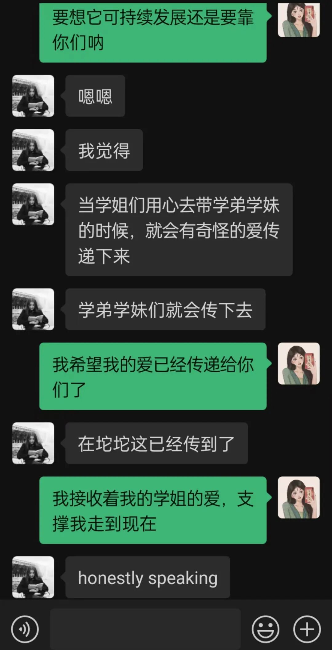 我们努力地把自己的收获和经验教给学弟学妹们,我们会因为他们的信赖而感动,也会因为他们的依赖而觉忧心。