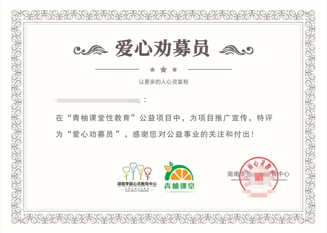 “青柚课堂”性教育公益项目由湖南李丽心灵教育中心发起,致力于普及科学的性知识。通过培训专业性教育讲师,深入学校和社区,结合儿童性教育知识体系,穿插性教育游戏及动画播放,针对性地开展性教育主题活动,引导孩子和家长在互动中学习性教育知识,解决家长不好意思与孩子谈性,孩子不懂科学的性等问题,给予孩子科学和健康的性观念、性知识,引导孩子尊重他人、学会保护自己、预防性侵害。