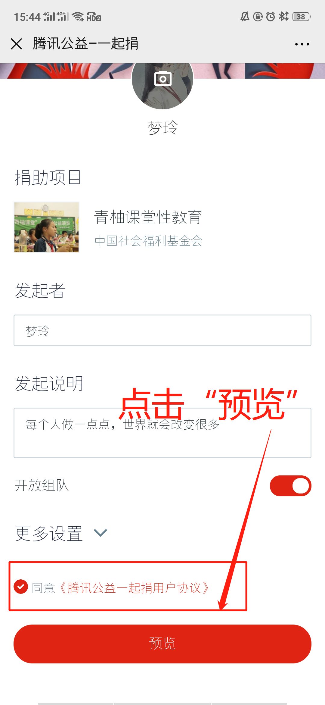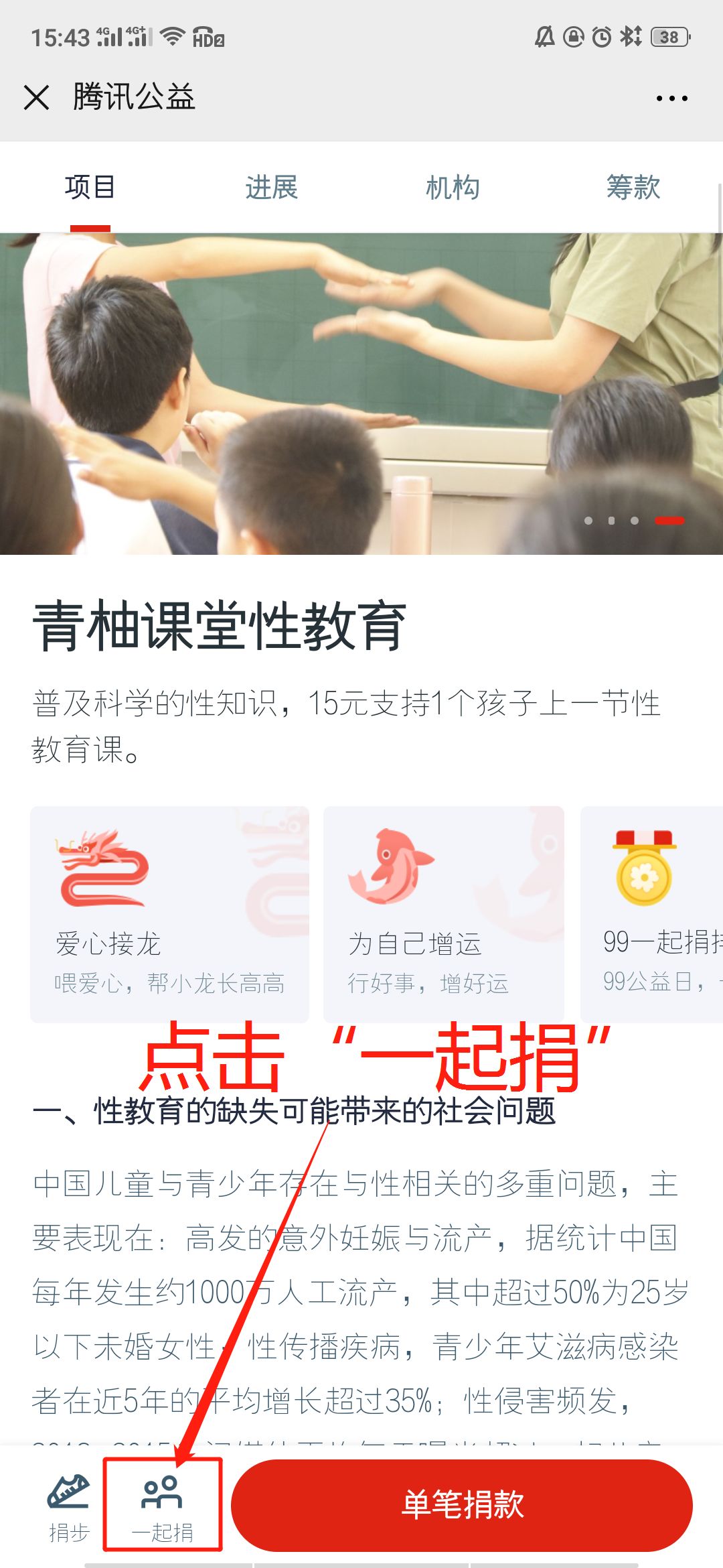 点击“一起捐”